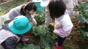 まずはキャベツの収穫